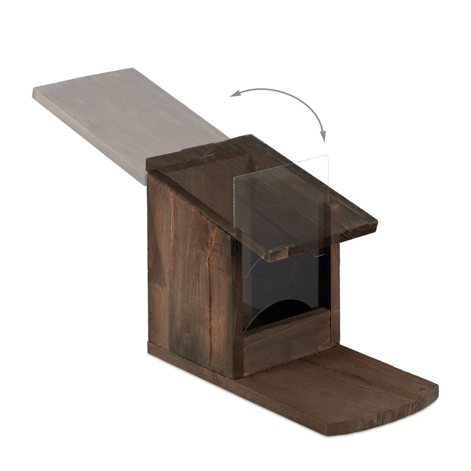 Polepšajte svoj vrt s krmilnico za veverice, ki zagotavlja osnovno hrano in čudovito opazovanje divjih živali. Skozi prozorno okence opazujte veverice, kako uživajo v poslasticah, da boste vedeli, kdaj jih morate napolniti.