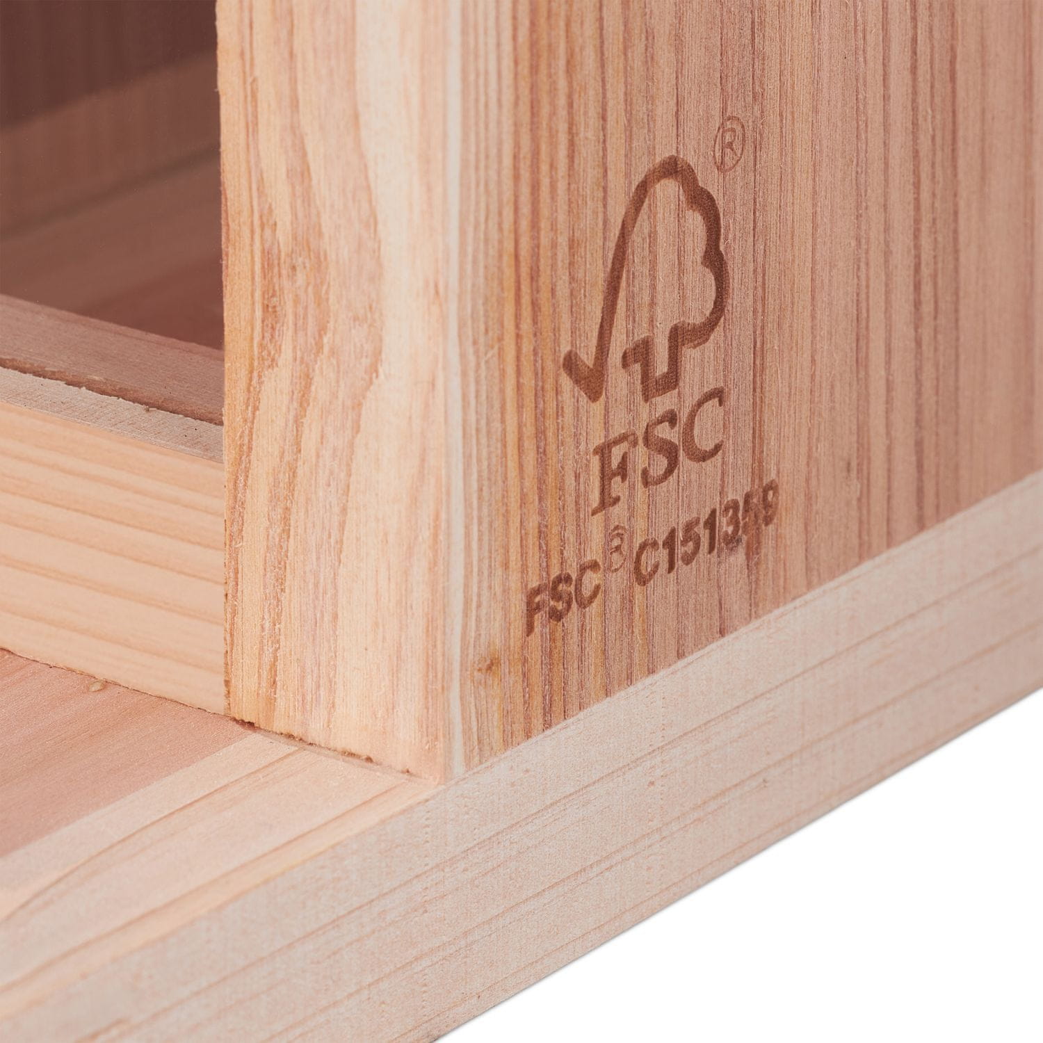 Krmilnica za veverice izboljša hranjenje prostoživečih živali z učinkovito podporo vevericam pri nabiranju zimskih zalog. Njegovo prozorno okence omogoča enostavno spremljanje ravni hrane in brez težav pritegne veverice.