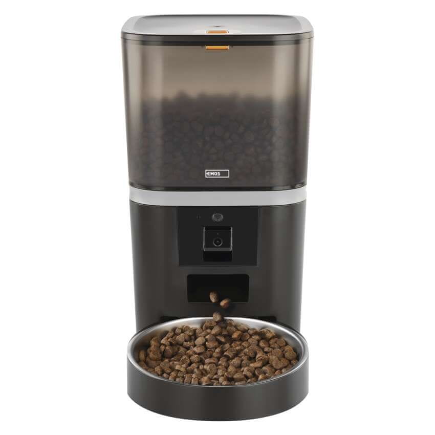 Emos GoSmart pametni dozirnik za hrano s prostornino 6 litrov. Velikost ene porcije je 5 gramov, zato je primeren za majhne in srednje pasme. Posamezne nastavitve lahko prilagodite v aplikaciji.