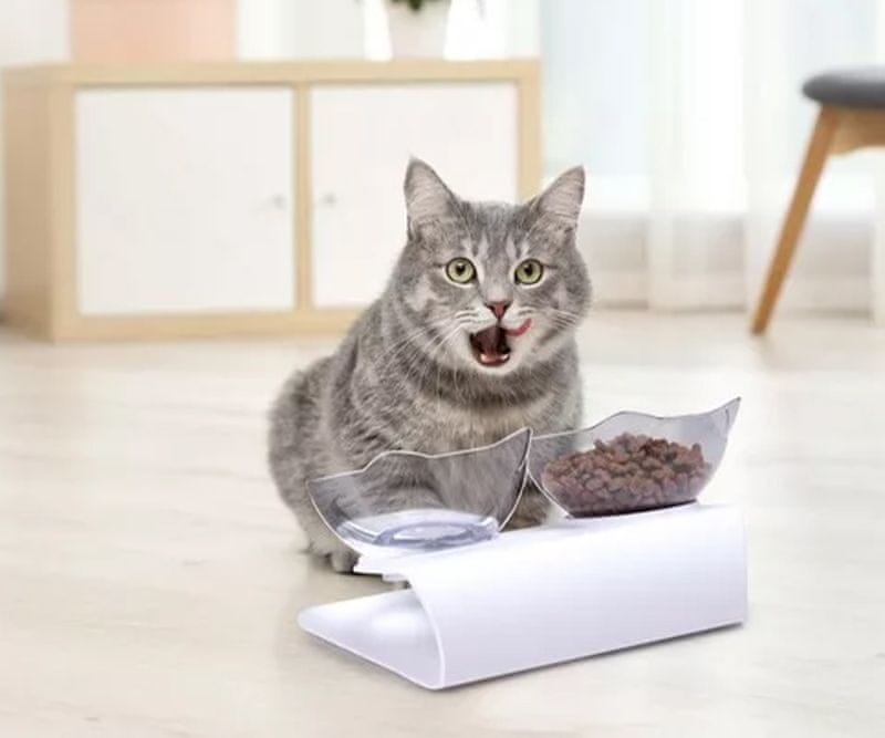 Omogočite svojemu mačku, da bo zadovoljil vse potrebe po prehranjevanju. Komplet 2 posod s stojalom je popolna rešitev za enostavno hranjenje vaših mačk, prav tako pa ostanki ne bodo umazali vaših tal.