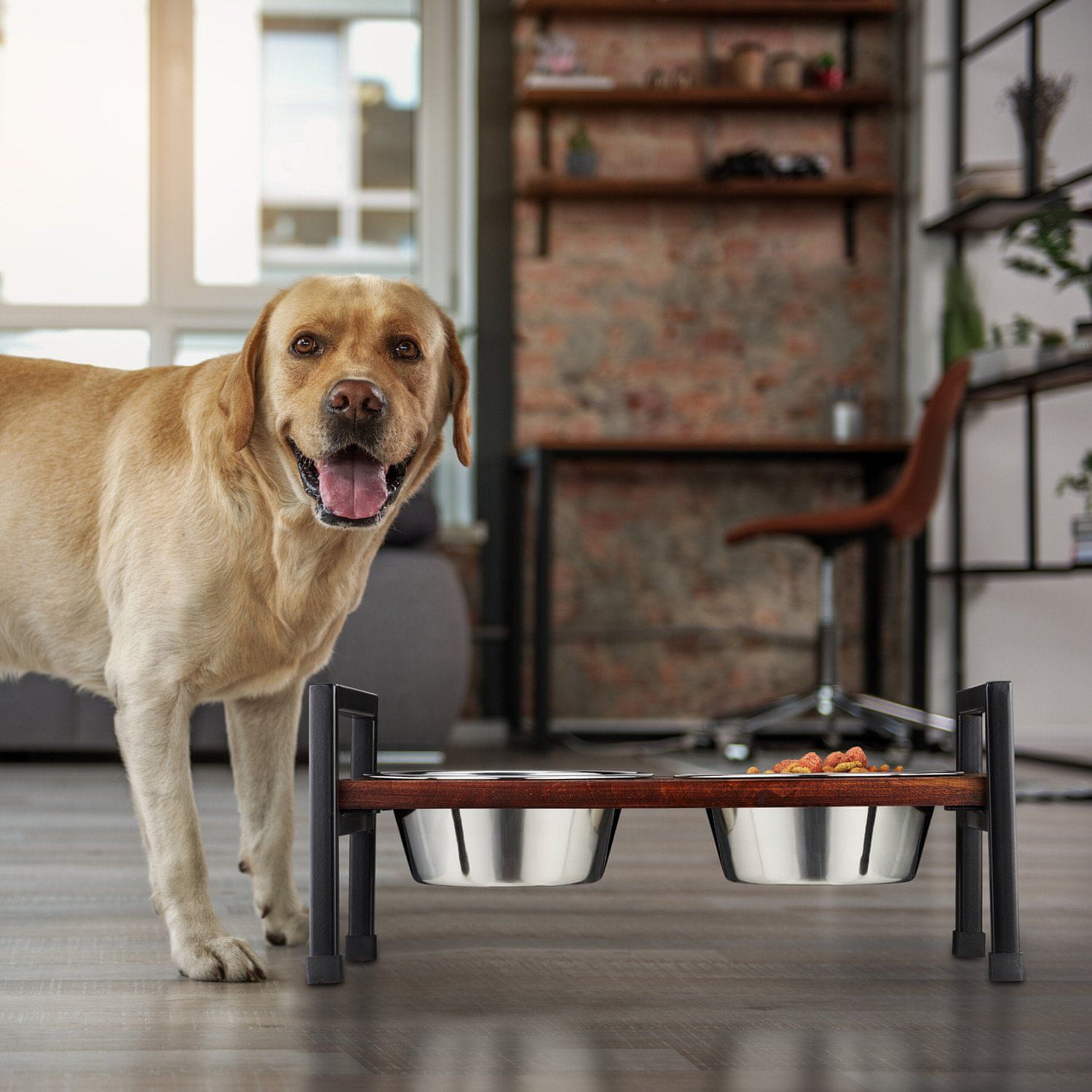 Dvignjena pasja posoda izboljša ergonomsko prehranjevanje in zmanjša obremenitev vratu vašega ljubljenčka. To robustno stojalo preprečuje razlitje in zagotavlja udobno izkušnjo obedovanja za vašega kosmatega prijatelja.