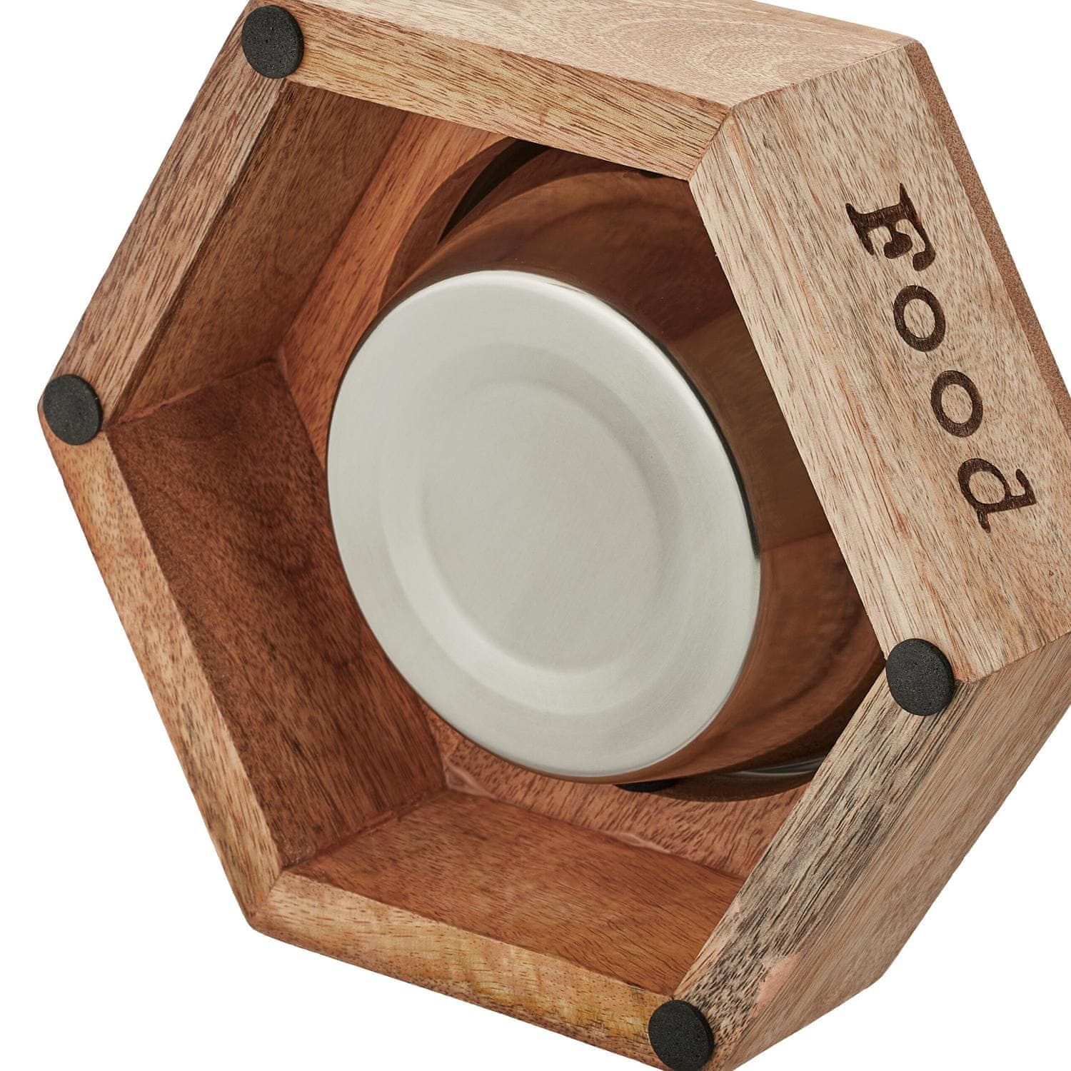 Nedrseče posode za hrano za hišne ljubljenčke zagotavljajo stabilnost in čistočo med obrokom. Ta trpežna stojala iz mangovega lesa preprečujejo razlitje, medtem ko sklede iz nerjavečega jekla Celoten opis