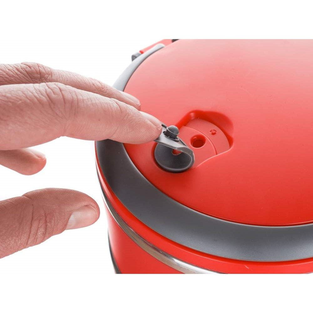 Plastični nosilec hrane CULINARIA Red 1,8 l, 3 deli je namenjen prenašanju hrane in pripravljenih obrokov. Prostornina vsake posode 0,6 l. Material: notranjost iz nerjavečega jekla 201, debelina nerjavečega jekla 0,30 mm, plastika PP.