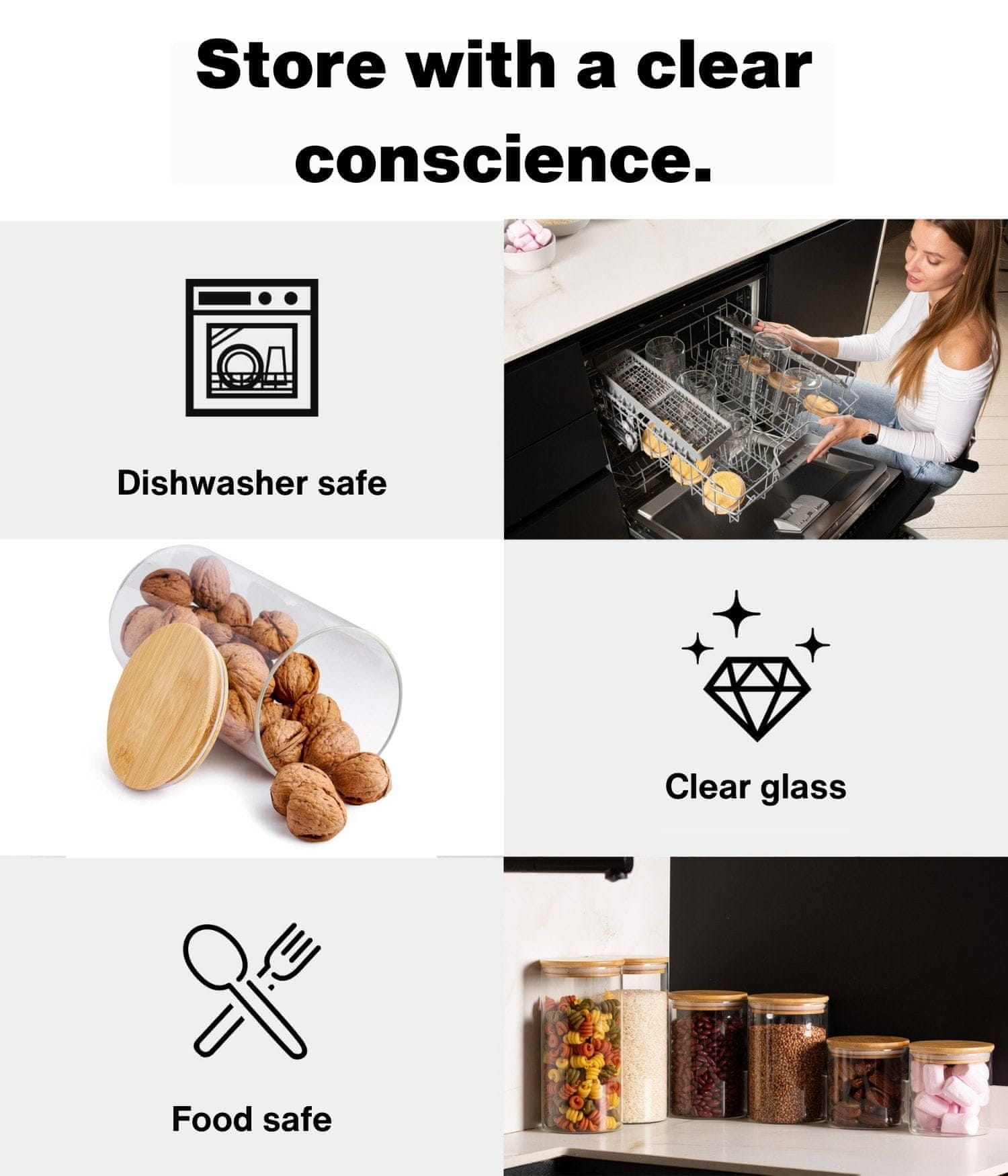 OPTIMALNA ORGANIZACIJA – Z našimi praktičnimi kozarci z bambusovim pokrovom bo vaša kuhinja vedno urejena. Ne glede na to, ali boste kozarce hranili na kuhinjskem pultu, v kredenci, shrambi ali omari, boste takoj našli, kar potrebujete! Celoten opis