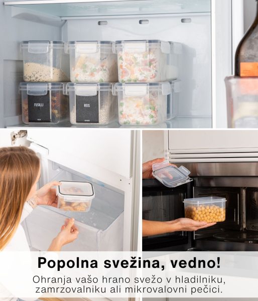 - VELIKO PROSTORA – naši organizatorji so na voljo v velikem kompletu 12 kosov s prostornino 0,8 l – dovolj prostora za organizirano shranjevanje živil!
