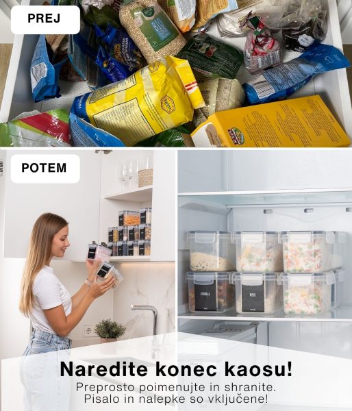 - VEČ REDA – Konec z neredom v shrambi. Ti zložljivi posodici so najboljša rešitev za shranjevanje različnih živil, kot so müesli, oreščki, piškoti in testenine.