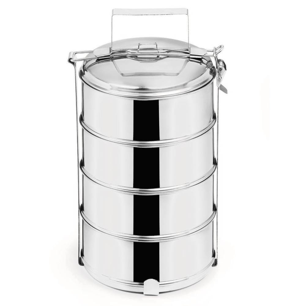 Menažna posoda ali menažka predstavlja idealno rešitev za prenos hrane in že pripravljenih jedi Material: nerjaveče jeklo Število posodic: 4 Premer posodice: 18cm Mere: 180(š)x320(v)mm Celoten opis
