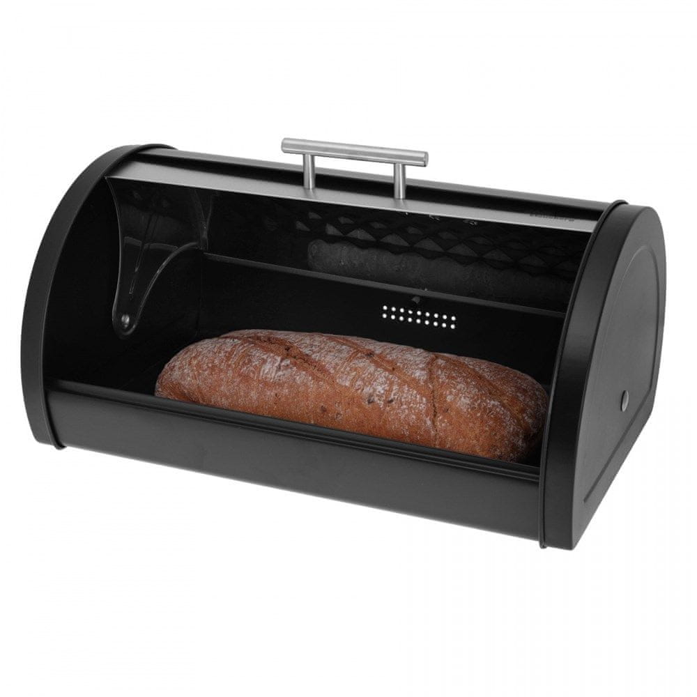 Posoda za kruh futuristične, moderne oblike v klasičnih, univerzalnih barvah. Ohišje izdelka je izdelano iz trdne in trpežne kovine s sijajnim zaključkom. Ima priročen kovinski pokrov s kovinskim ročajem. Pokrov z diamantnim zaključkom daje posodi za kruh edinstven značaj.