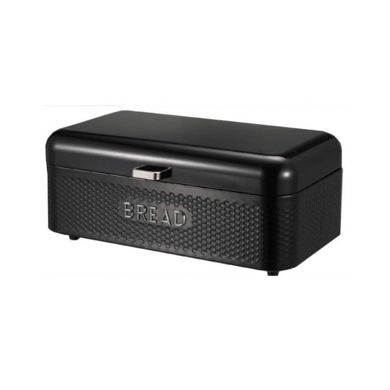 Specifikacije:  Dolžina: 42 cm / Širina: 24,5 cm / V Višina: 17,5 cm  Dodatne informacije: Posoda za kruh iz ogljikovega jekla s črnim emajlom Reliefni vzorec satja Srebrni napis BREAD na sprednji strani posode za kruh Enostavno odpiranje, ne zavzame dodatnega prostora Zasnovano za shranjev Celoten opis