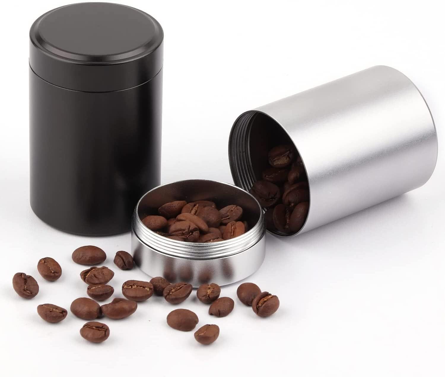 Nikcorp Aluminijasti nepredušni kozarci za shranjevanje 2 kosa, 50 ml, odporni na vonjave, za začimbe, kavo in čaj, črn in srebrn
