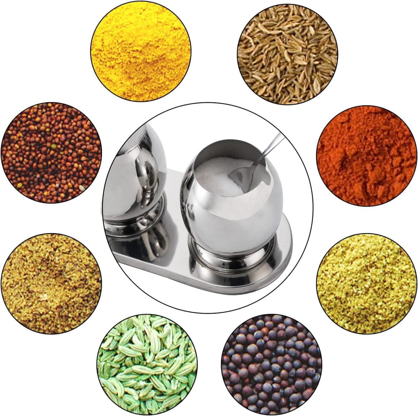 - Večnamenska posoda: Idealna za shranjevanje soli, popra, čilija, omak, sladkorja, posušenih zelišč in drugih začimb.