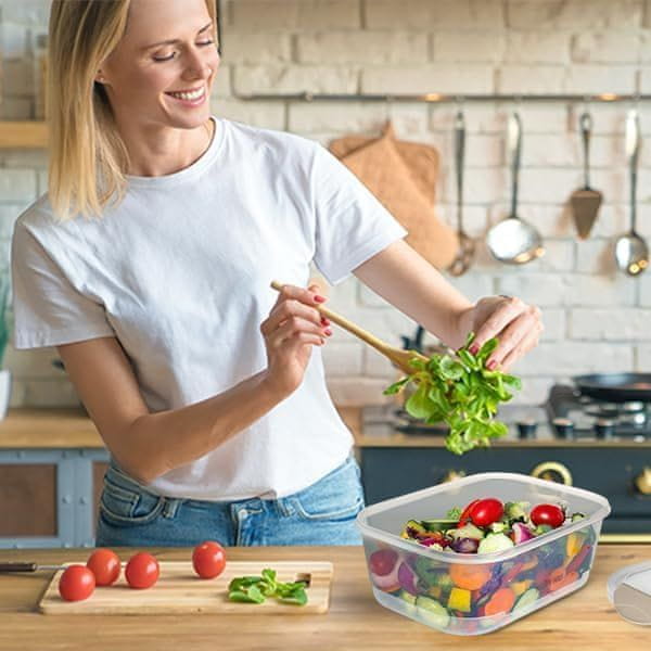 Set posod za hrano je praktična rešitev za učinkovito shranjevanje živil v gospodinjstvu. Zasnovan je za uporabo v hladilniku, zamrzovalniku in za boljšo organizacijo prostora v kuhinji. Modularna zasnova omogoča zlaganje posod, kar prihrani prostor, medtem ko tesni pokrovi pomagajo ohranjati svežino shranjenih izdelkov. Ta set je sestavljen iz petih posod različnih prostornin, kar omogoča prilagodljivo shranjevanje različnih količin hrane.