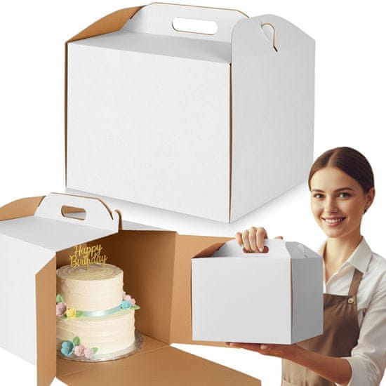 sarcia.eu Bela kartonska škatla za torte, embalaža za slaščice z ročajem, trpežna škatla za catering 30x30x25 cm 1 kosov