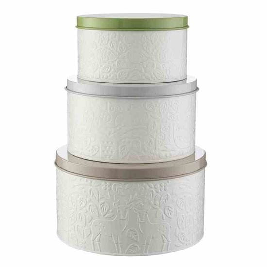 LASTNOSTI IZDELKA: – set 3 pločevink za shranjevanje npr. piškotov, čaja, drobnarij, itd., – izdelane iz barvanega jekla, – okrašene z reliefnimi vzorci, – vsaka je opremljena s pokrovom v drugačni barvi, kar vam omogoča za razlikovanje vsebine, – V gozdu je zbirka posod z gozdnimi motivi, ki jih Celoten opis