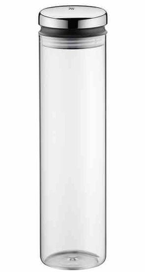 LASTNOSTI IZDELKA: – za shranjevanje razsutih izdelkov, – prozorne stene olajšajo prepoznavanje vsebine, – velika odprtina – enostavno polnjenje, – tesen pokrov, – materiali, ki ne spremenijo okusa vsebine, – higieničen in enostaven za čiščenje – primeren za pomivalni stroj . Mere: 36 × 9,7 cm (V x G) Barva: Prozorna Material: Cromargan® 18/10 polirano nerjaveče jeklo, steklo, plastika Kolekcija: Depot