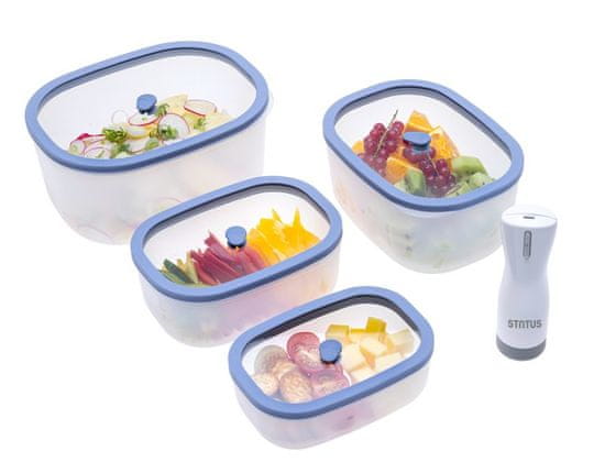 Fresko vakuumske posode so idealne za kakovostno shranjevanje hrane doma ali na poti. Set vsebuje štiri posode različnih velikosti in priročno baterijsko črpalko, ki z enim pritiskom ustvari optimalen vakuum. S tem zmanjšate izpostavljenost živil zraku, upočasnite kvarjenje ter podaljšate njihovo obstojnost in svežino. Prozoren steklen pokrov omogoča hitro preverjanje vsebine, varno tesnilo pa preprečuje uhajanje tekočin. Posode so lahke, neprepustne in zasnovane za enostavno zlaganje, kar olajša shranjevanje in vsakodnevno uporabo.