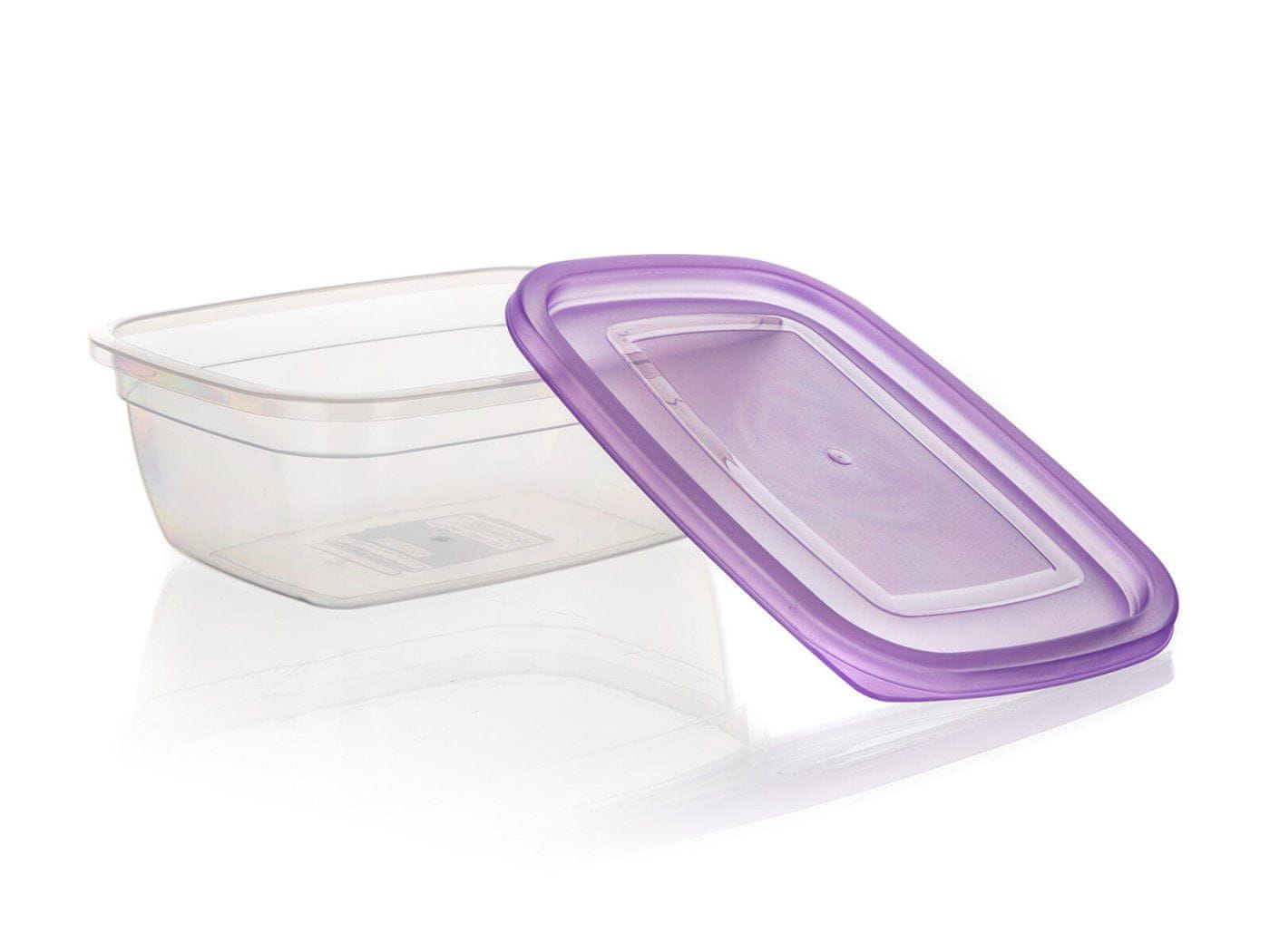 prostornina: 1,25 l material: plastika barva: prozorna škatla, vijolični pokrov pakiranje: 3 kosi