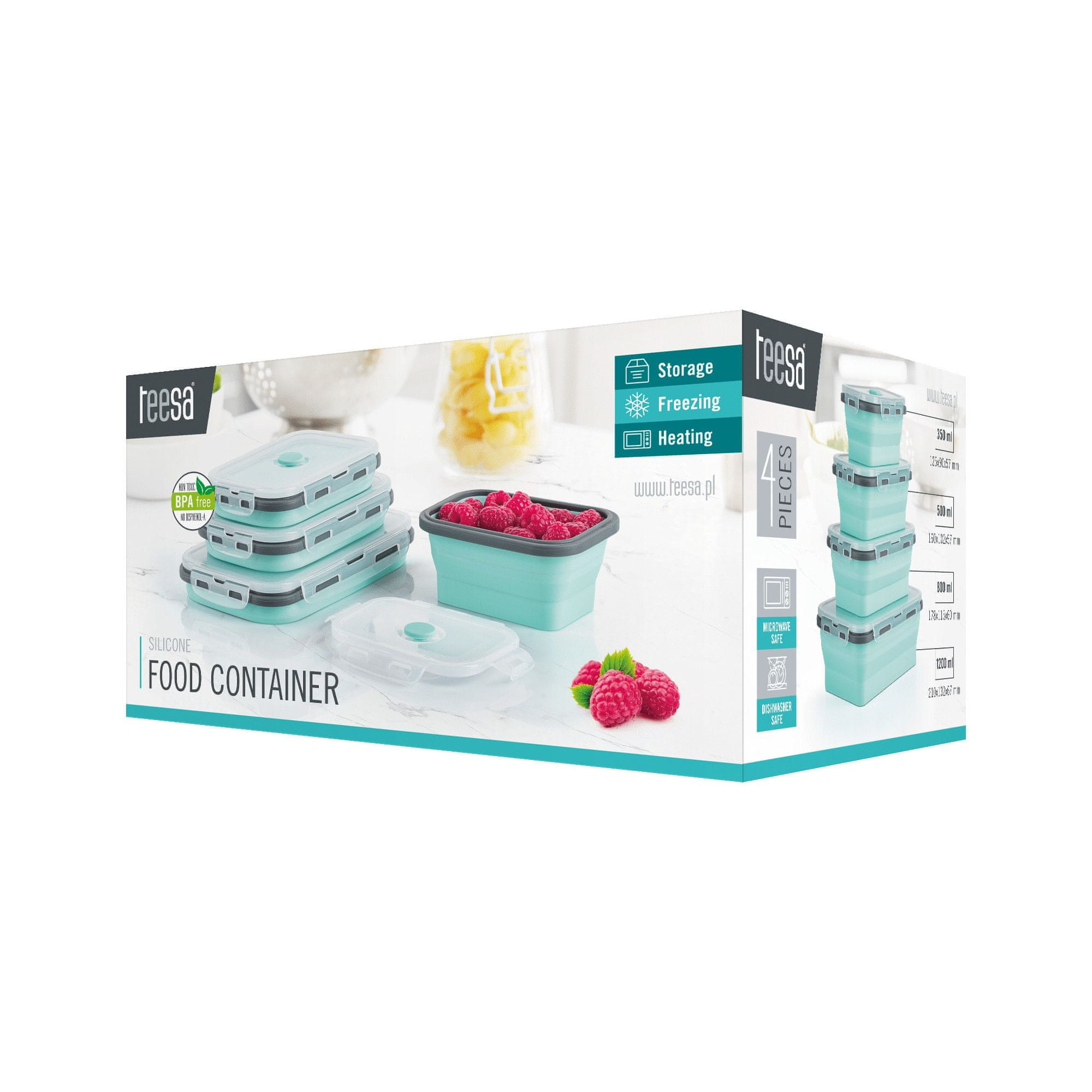 Teesa Set 4 zložljivih pravokotnih silikonskih posod za živila + pokrovi