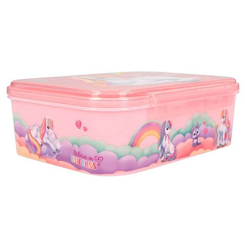 Svačinový box Ylvi, Růžový, s jednorožcem, s přepážkou Celoten opis