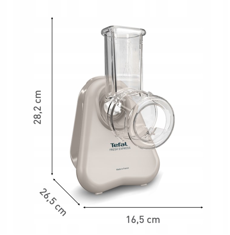 Fresh Express je bil ustvarjen za kuhinje, kjer šteje vsak centimeter prostora. Zaradi izjemno kompaktne velikosti se prilega celo majhni omarici, pameten sistem shranjevanja pa omogoča, da nastavke in kabel skrijete v notranjost aparata. Funkcija Direct-Serve vam omogoča, da sestavine narežete neposredno v skledo ali krožnik, kar ne le pospeši kuhanje, temveč tudi znatno poenostavi čiščenje. Poleg tega so nastavki primerni za pomivanje v pomivalnem stroju, zato je čiščenje izjemno preprosto.