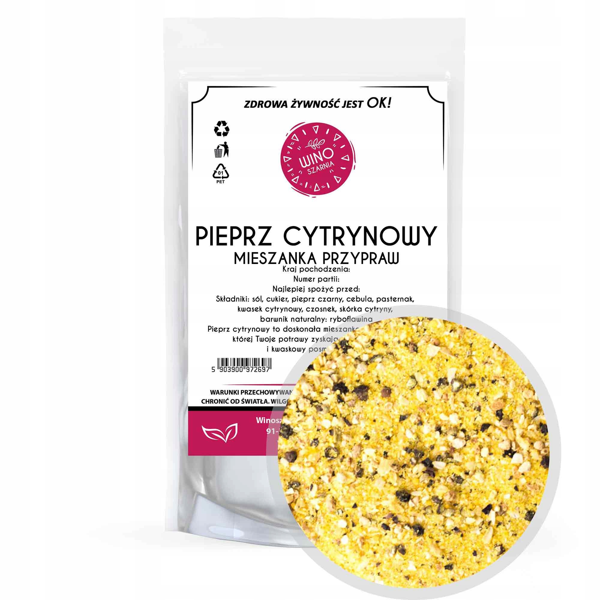 - Sestavine:sol, sladkor, črni poper, čebula, pastinak, citronska kislina, česen, limonina lupina, naravno barvilo: riboflavin