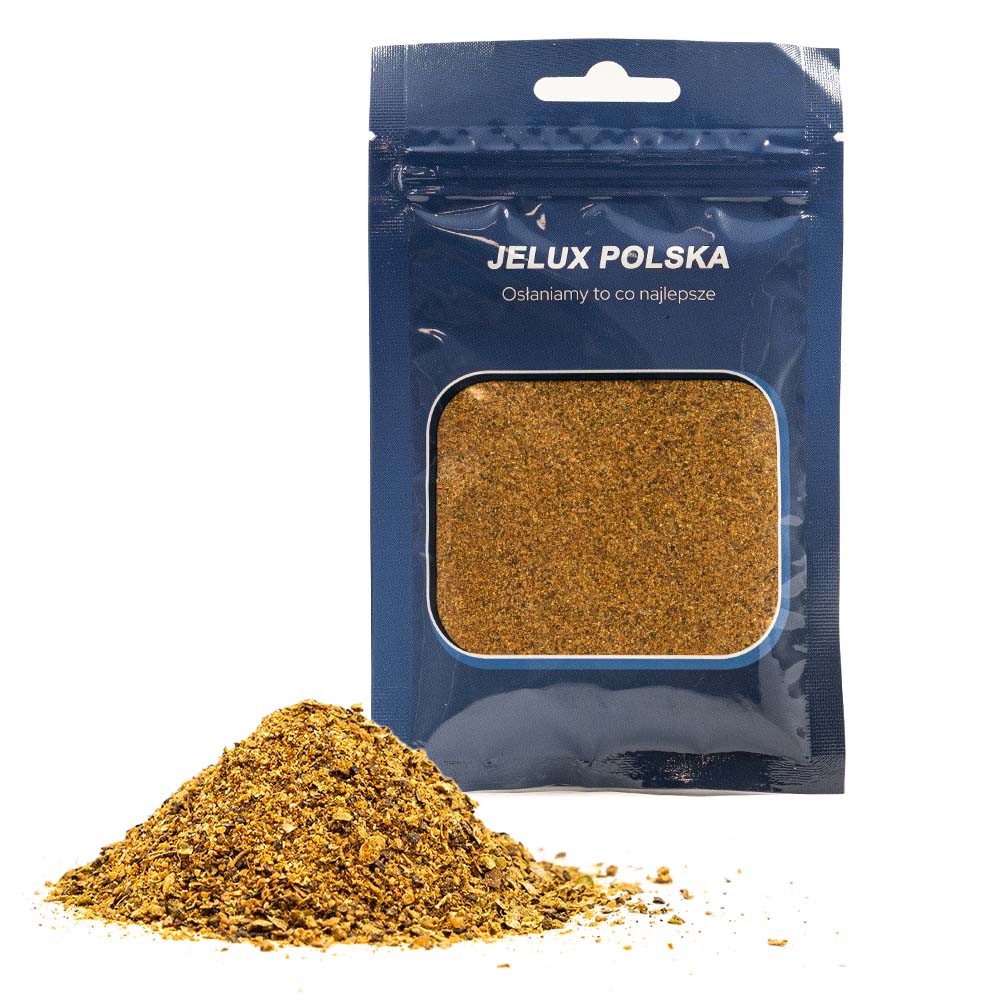 Sestavine: črni poper, česen, piment, kumina, koriander, sladka paprika, majaron, beli poper, klinčki.