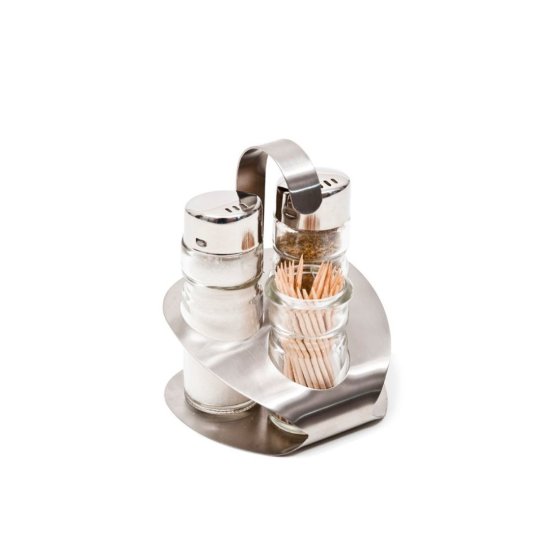 Eva 3-delni namizni set z držalom amalfi (za sol, poper, zobotrebce) / inox, steklo