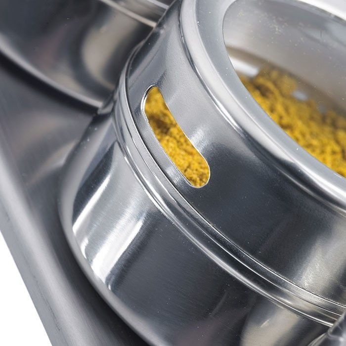 Eleganten komplet iz nerjavečega jekla za shranjevanje začimb blagovne znamke Westmark sestavljajo 4 posodice in podstavek iz nerjavečega jekla. Posodice so opremljene s praktičnim magnetnim dnom, zato lahko varno stojijo na podstavku in imajo dve možnosti odpiranja za popolno doziranje začimb. Celoten opis