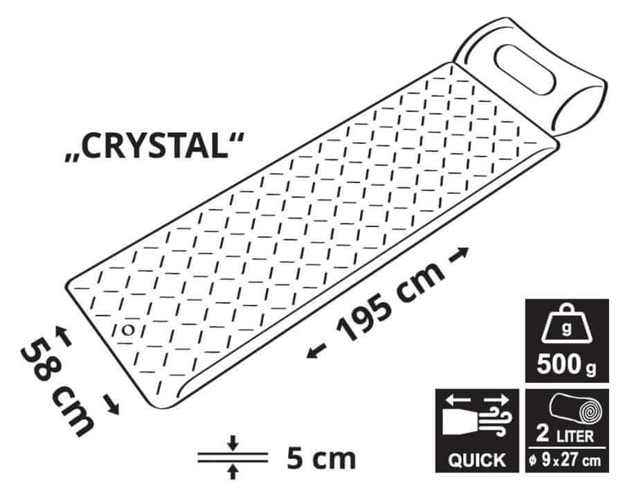 Ali boste kampirali? Ne pozabite spakirati ležišča in si pripraviti udobnega prostora za spanje. Cattara CRYSTAL napihljiva avtomobilska vzmetnica z blazino vam bo zagotovila udobje ne le pri sproščanju v naravi. Med napihovanjem membrana zadrži zrak v notranjosti ležišča, kar olajša pripravo. Napihnjena vzmetnica ima dimenzije 195 × 58 × 5 cm.