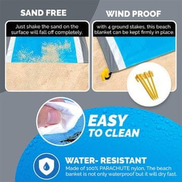 Netscroll Zložljiva vodoodporna nepremočljiva podloga za plažo, kampiranje ali piknik, 210x200 cm, nič več peska ali vlage, uživajte kjerkoli, dodana vrečka za shranjevanje, enostavno pranje,Mat4Beach