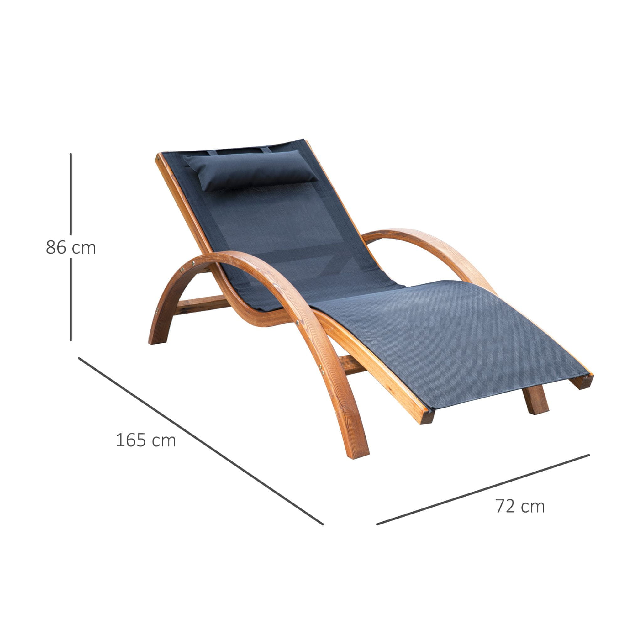 OUTSUNNY Outsunny ležalnik z naslonom za glavo, lesen okvir in dihajoča mrežasta tkanina, za vrt in bazen, črn