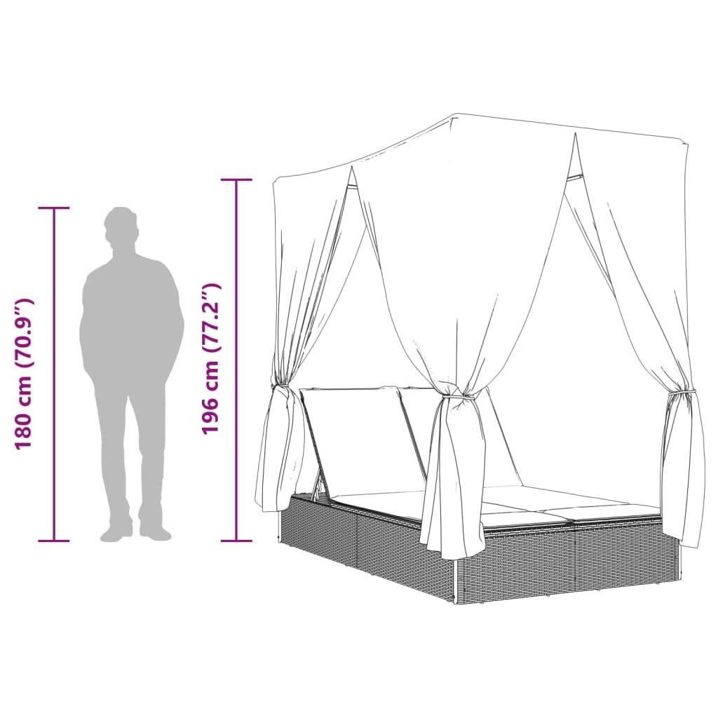Vidaxl Dvojni ležalnik s streho in zavesami črn poli ratan