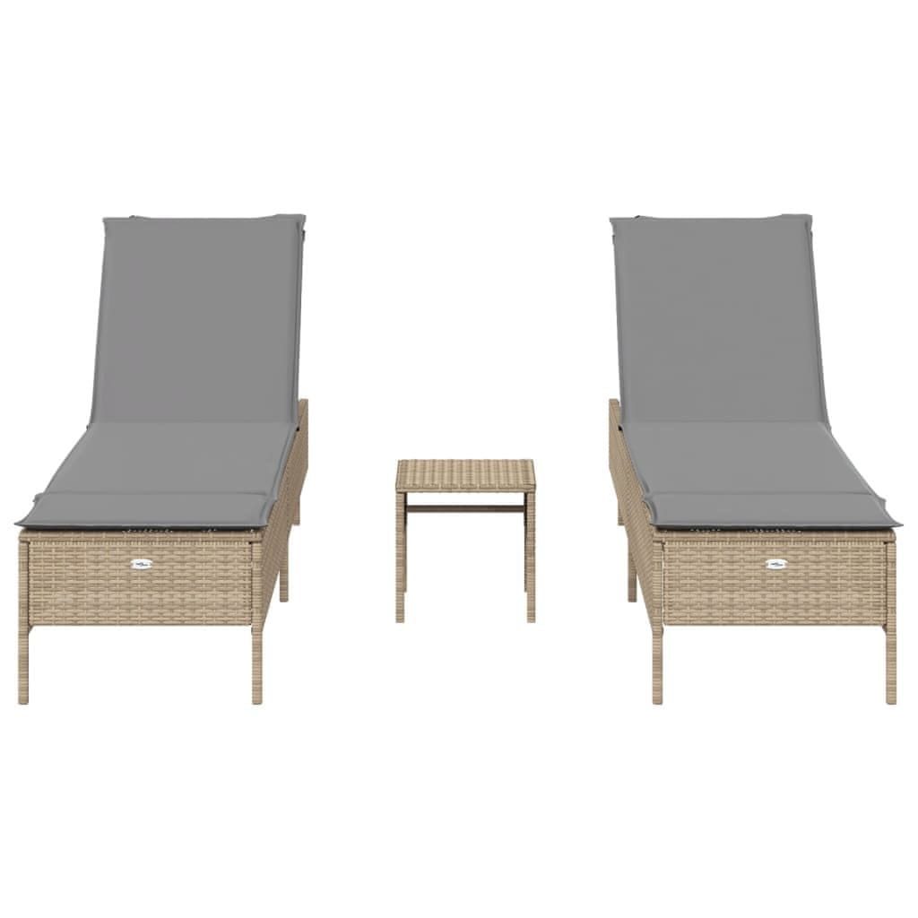 Vidaxl Ležalnik z blazino 3 kosi bež poli ratan