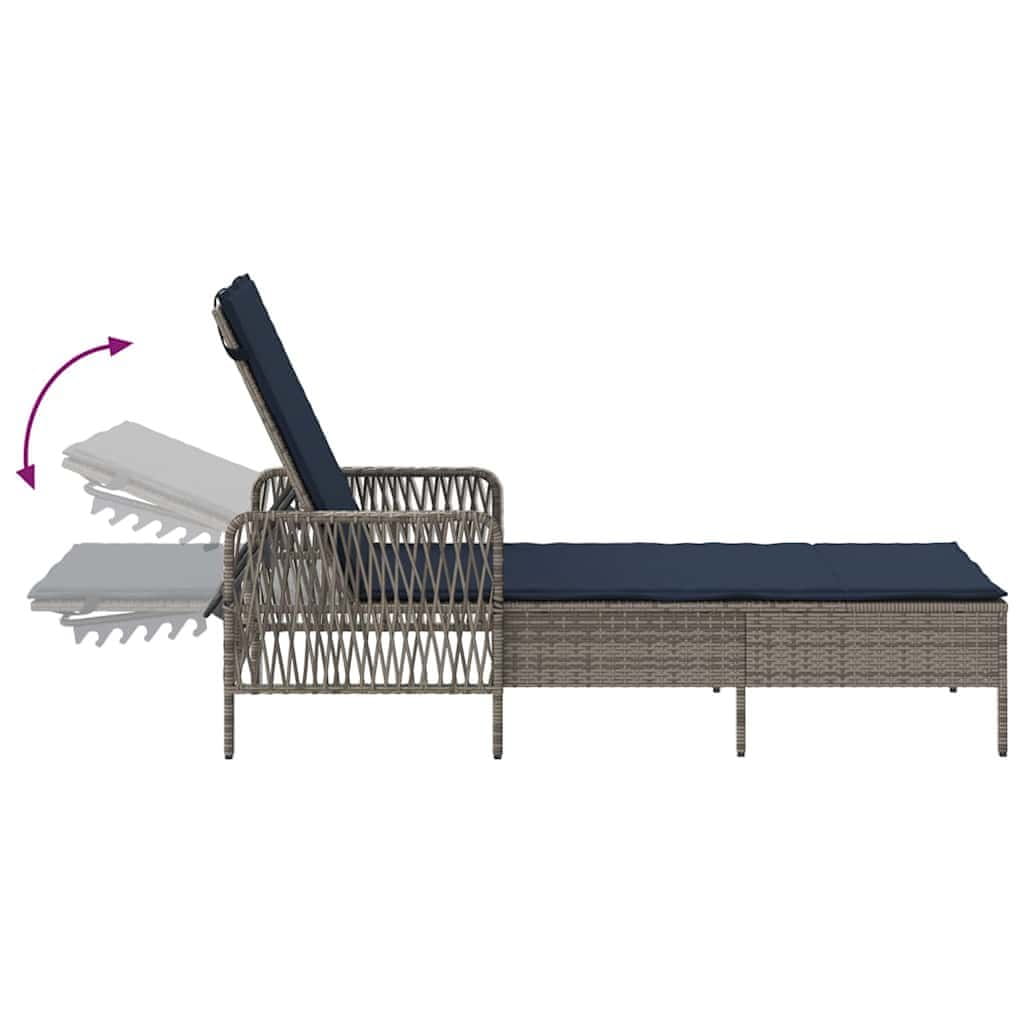 Vidaxl Ležalnik z blazino 3 pcs Siva in mornarsko modra poli ratan