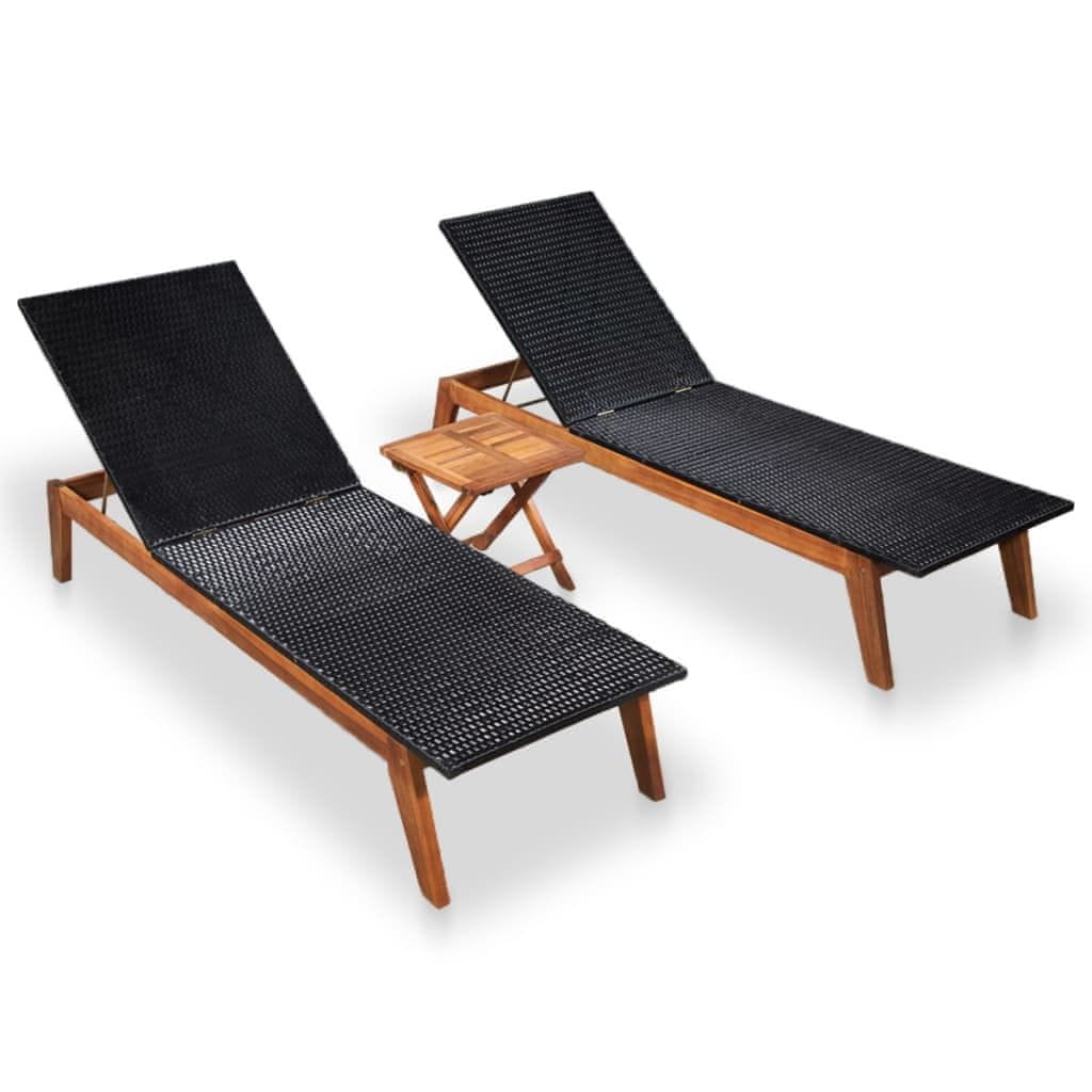 Vidaxl Ležalniki 2 kosa z mizico poli ratan in trden akacijev les