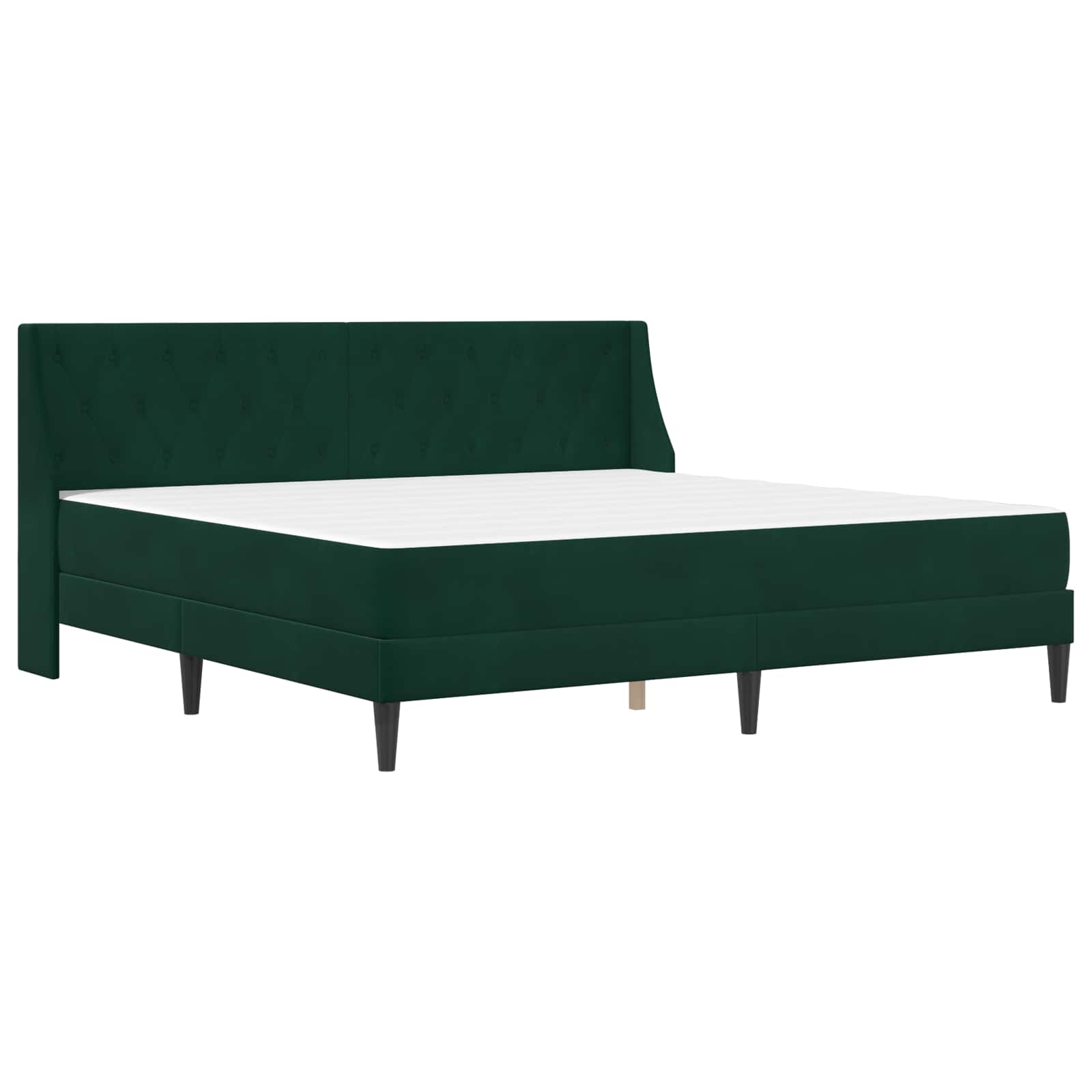 Vidaxl Posteljni okvir z vzmetnico Temno zelena 200 x 200 cm Žamet