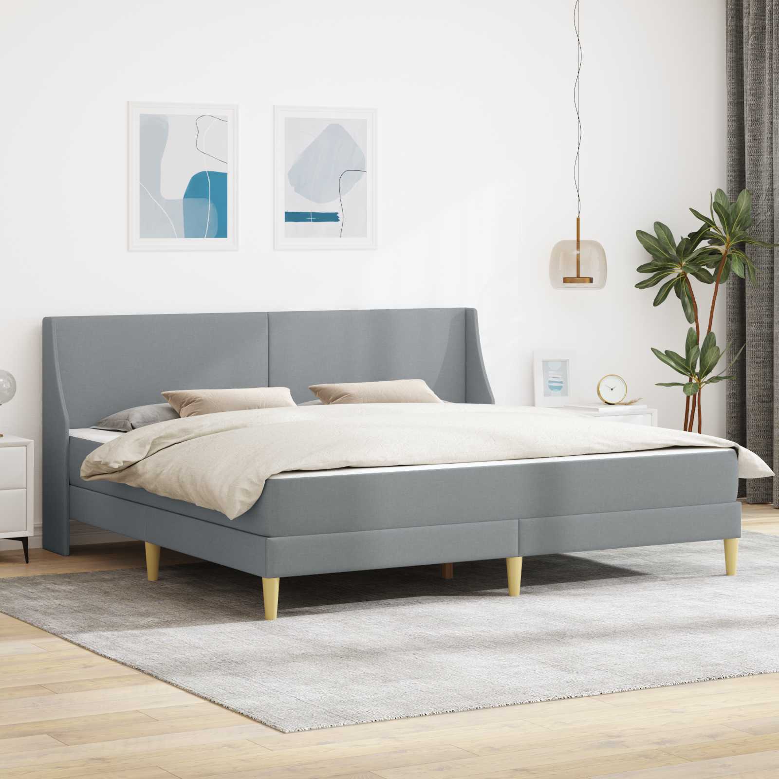 Vidaxl Posteljni okvir z vzmetnico Svetlo siva 200 x 200 cm Poliester