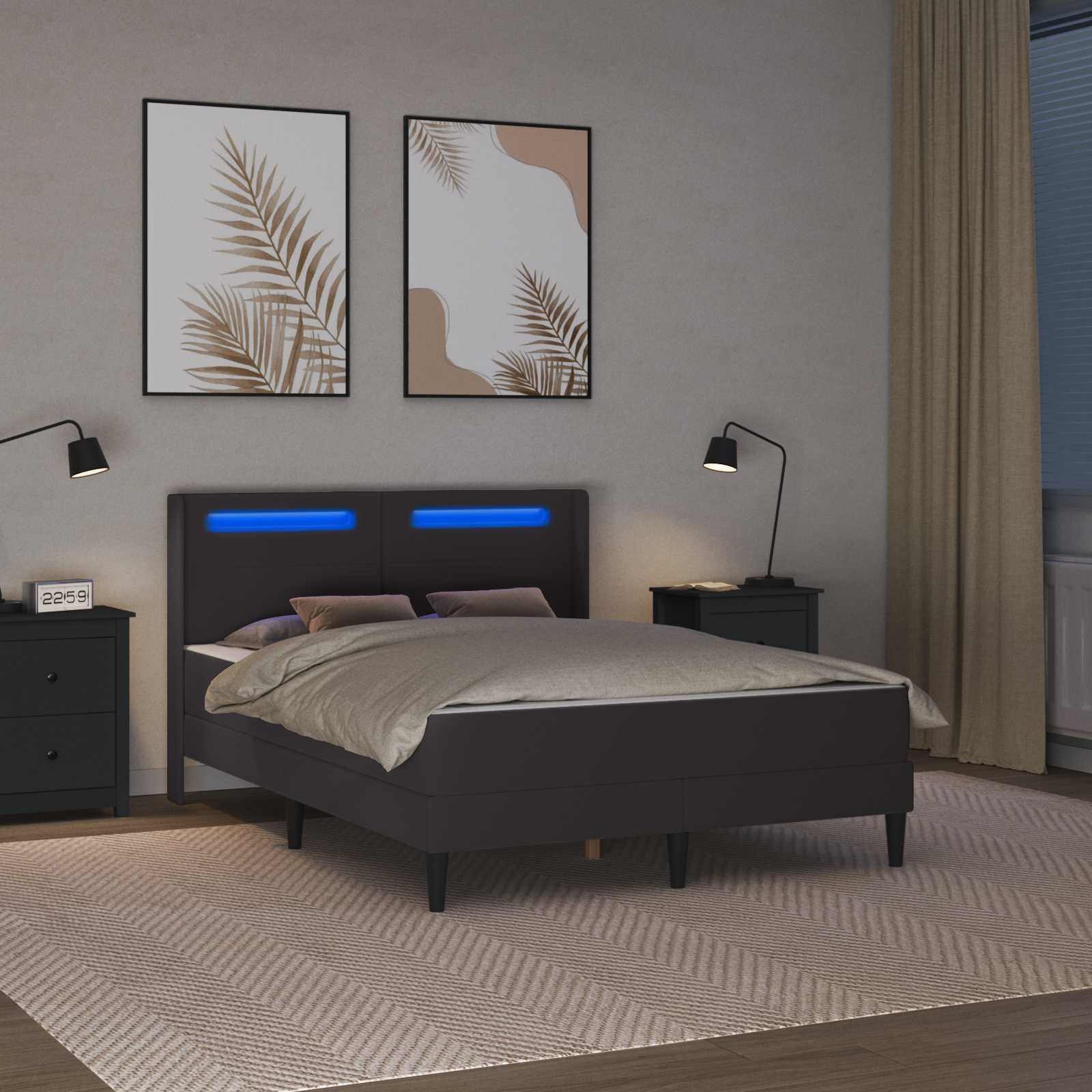 Vidaxl Posteljni okvir z vzmetnico Siva 140 x 200 cm Umetno usnje