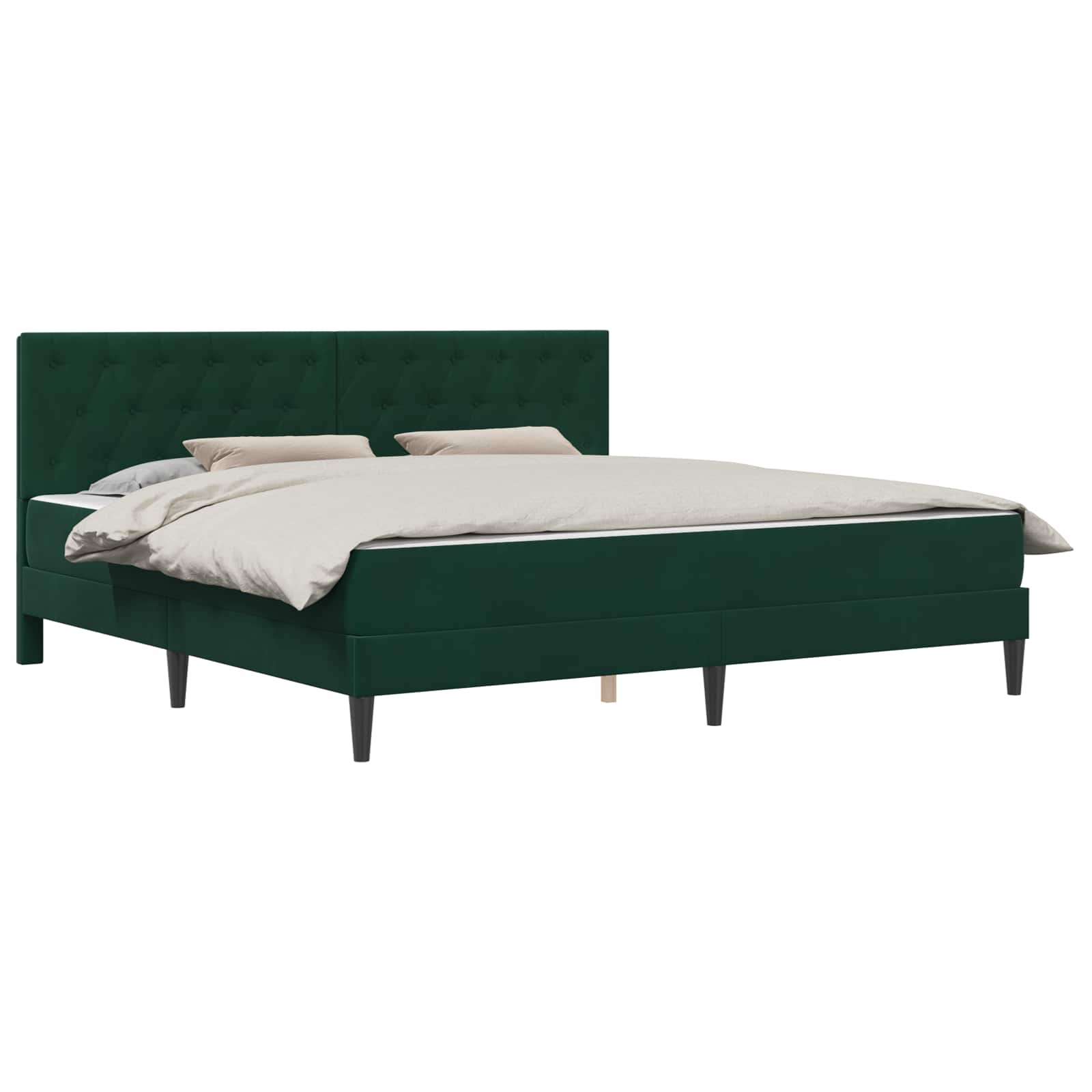 Vidaxl Posteljni okvir z vzmetnico Temno zelena 200 x 200 cm Žamet