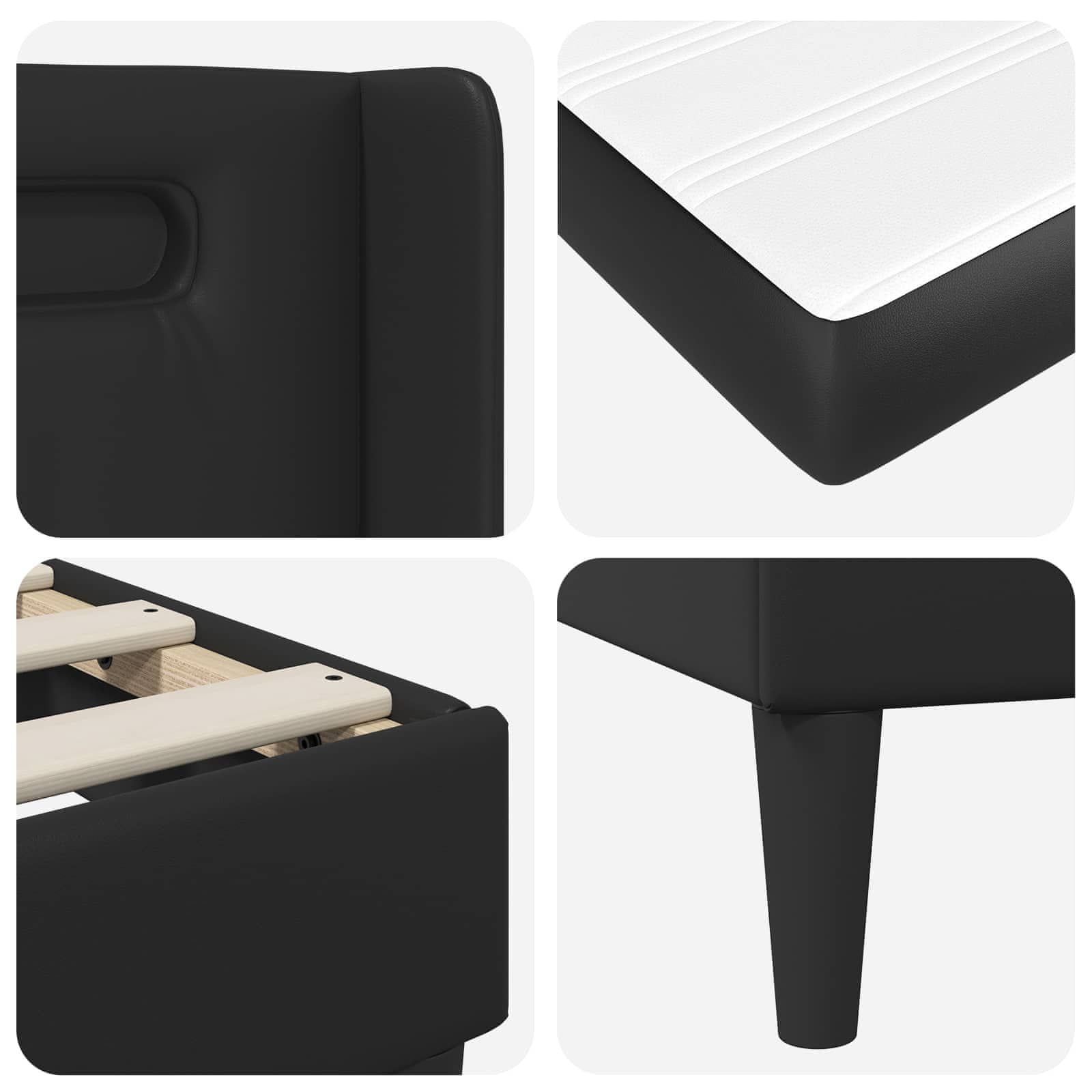 Vidaxl Posteljni okvir z vzmetnico Črna 90 x 190 cm Umjetno usnje