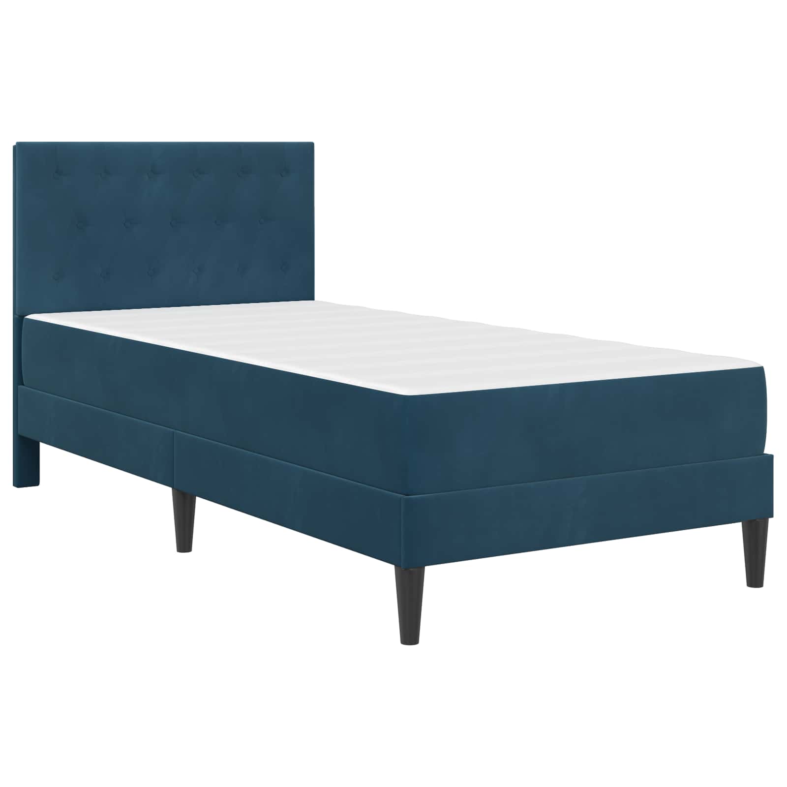 Vidaxl Posteljni okvir z vzmetnico z vzglavjem Modra 80 x 200 cm Žamet