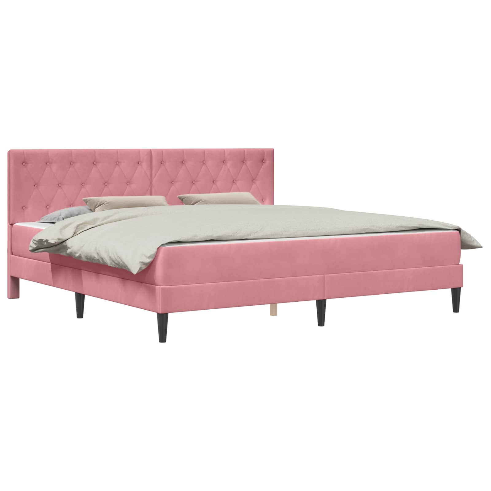 Vidaxl Posteljni okvir z vzmetnico z vzglavjem Roza 200 x 200 cm Žamet