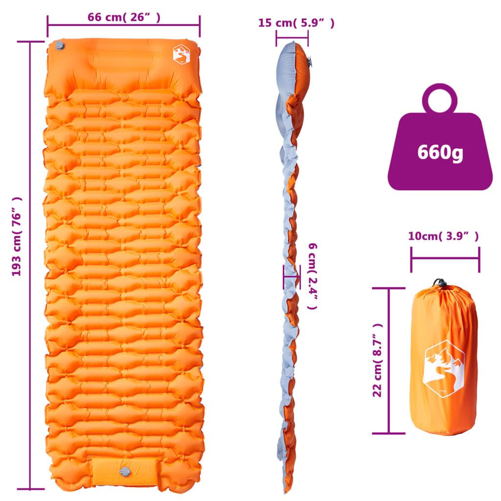 Vidaxl Samonapihljivo ležišče za kampiranje z blazino 1 osebo oranžno
