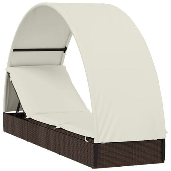 Vidaxl Vrtni ležalnik s streho rjav 211x57x140 cm poli ratan