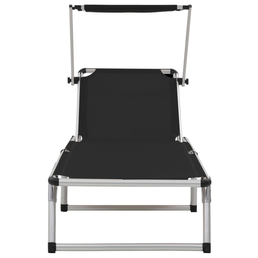 Vidaxl Zložljiv ležalnik s streho 2 kosa aluminij in tekstil črn