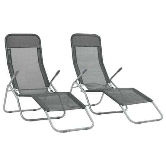 Vidaxl Zložljivi ležalniki 2 kosa tekstil antracitne barve