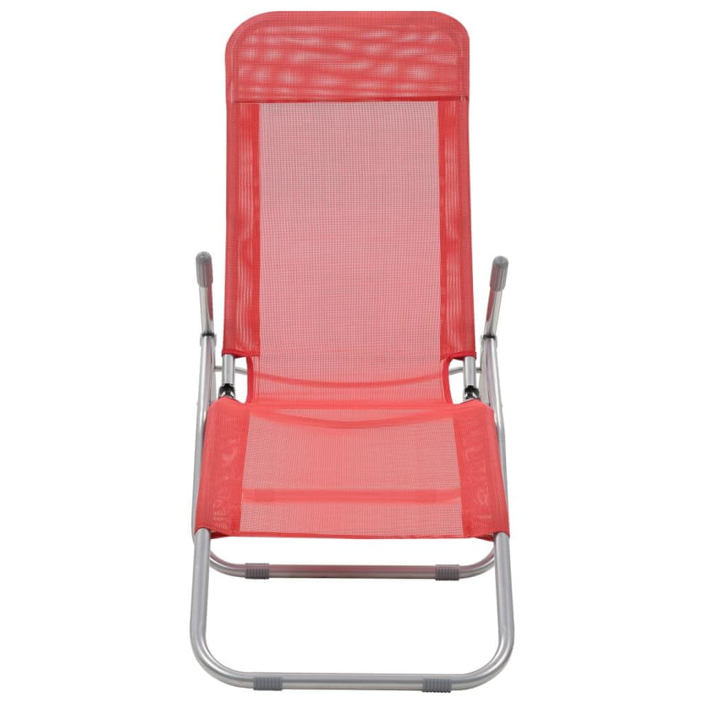 Vidaxl Zložljivi ležalniki 2 kosa tekstil rdeče barve