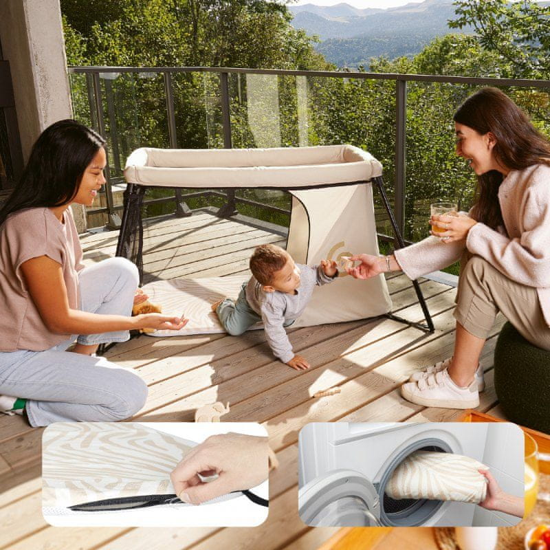 • izjemno lahka in kompaktna potovalna posteljica in igralo v enem
