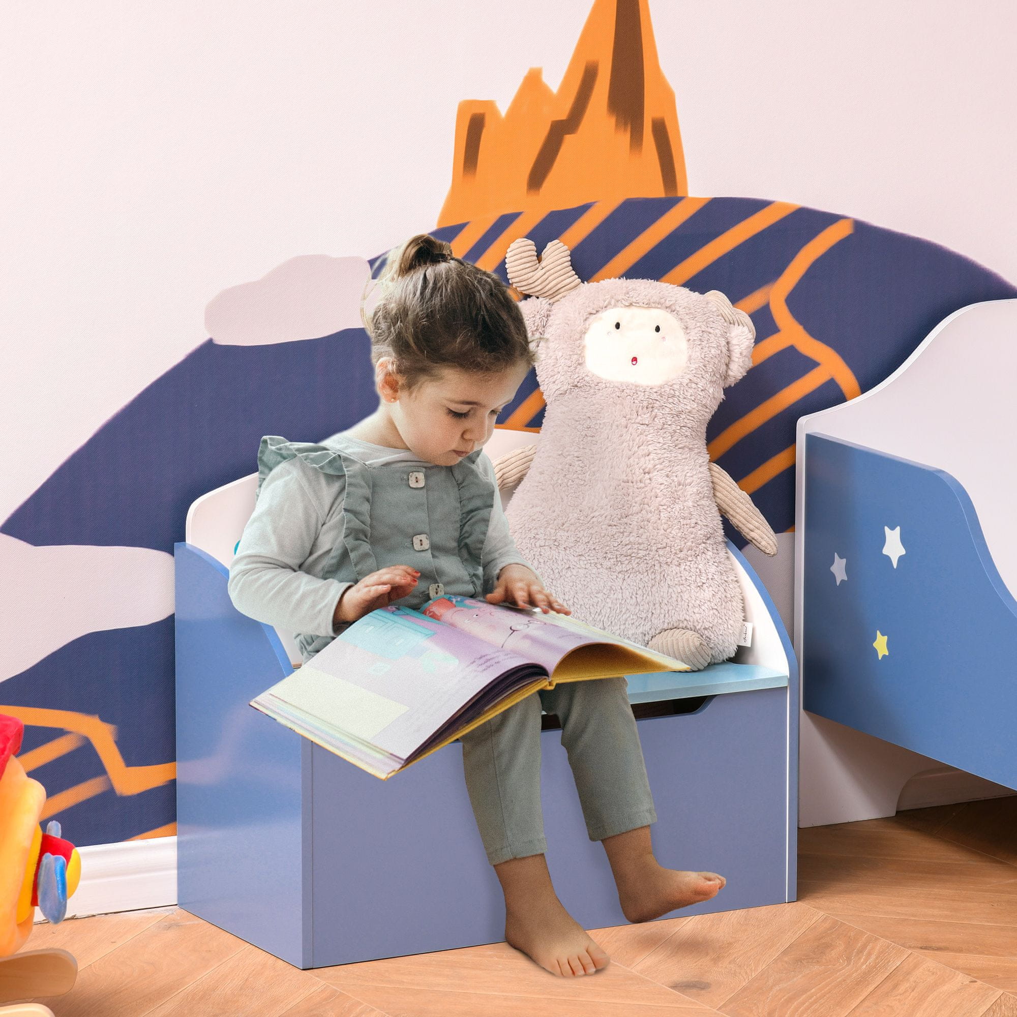 HOMCOM HOMCOM skrinja za igrače, modra lesena klop za otroško sobo, 3-6 let, 60 x 30 x 50 cm