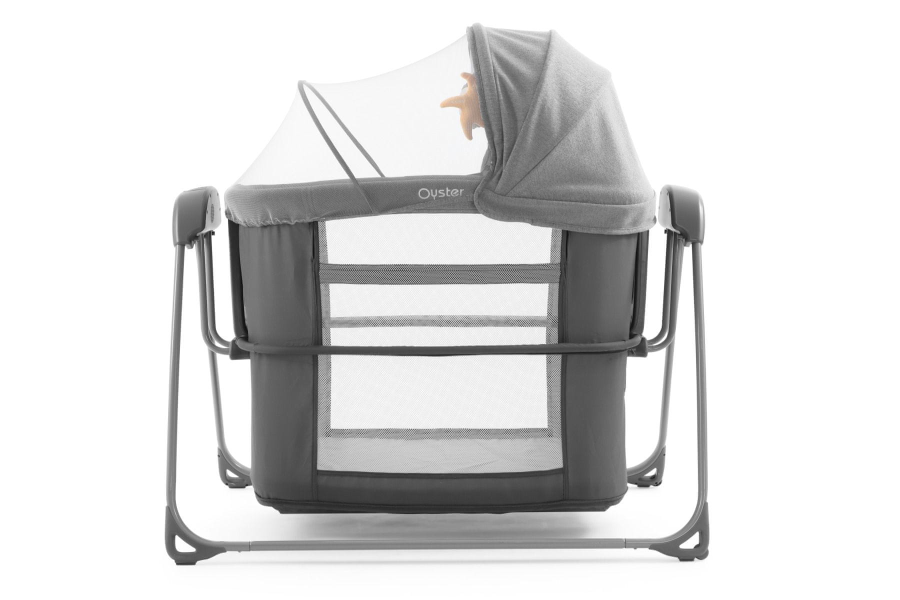 Oyster Home Crib – Fossil je kombinacija varnosti, udobja in praktičnih funkcij, zaradi katerih je idealen prostor za spanje in igro vašega dojenčka.